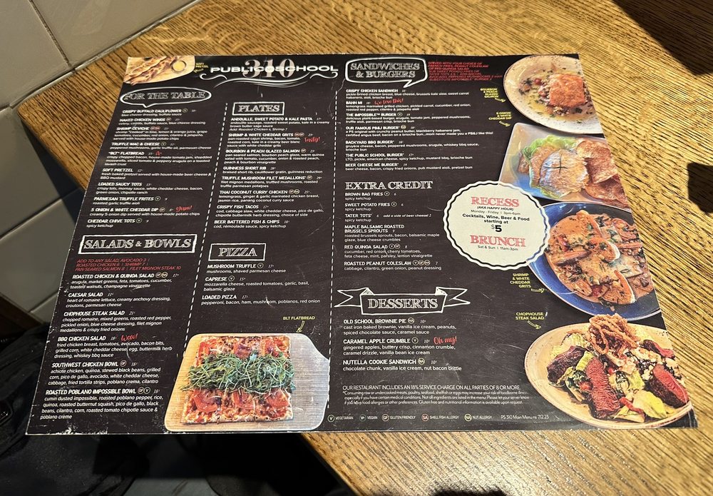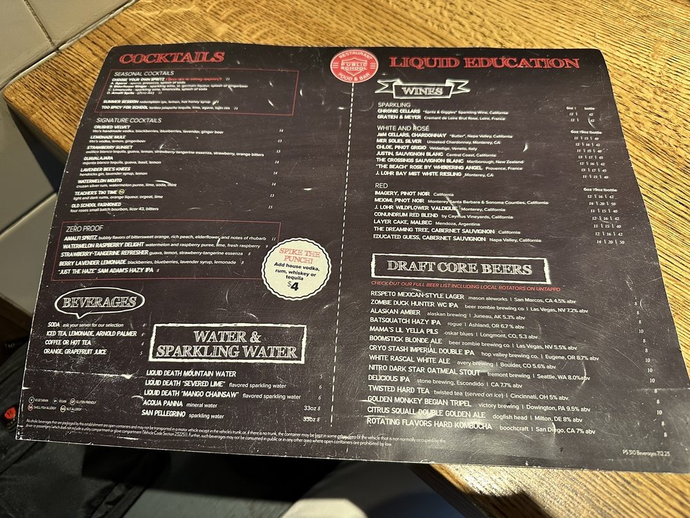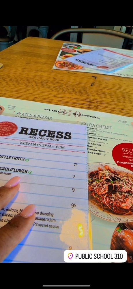 Introducing Public School 310, a trendy and casual dining spot in Culver City, CA. With a focus on offering a diverse menu catering to various dietary preferences including vegan and vegetarian options, Public School 310 also provides a range of amenities like outdoor seating, full bar, and happy hour specials. The brunch menu features delicious items like Dean's List Breakfast, Filet Mignon Steak & Eggs, and Eggs Benedict Pizza. Notable dishes include the Crispy Buffalo Cauliflower, Bacon Cheddar Tots, and Cuban Empanadas. Customers rave about the flavorful food and attentive service, making it a great spot for group gatherings or casual meals. The restaurant's school-themed decor adds a unique touch to the dining experience, while the friendly atmosphere and tasty dishes keep patrons coming back for more.